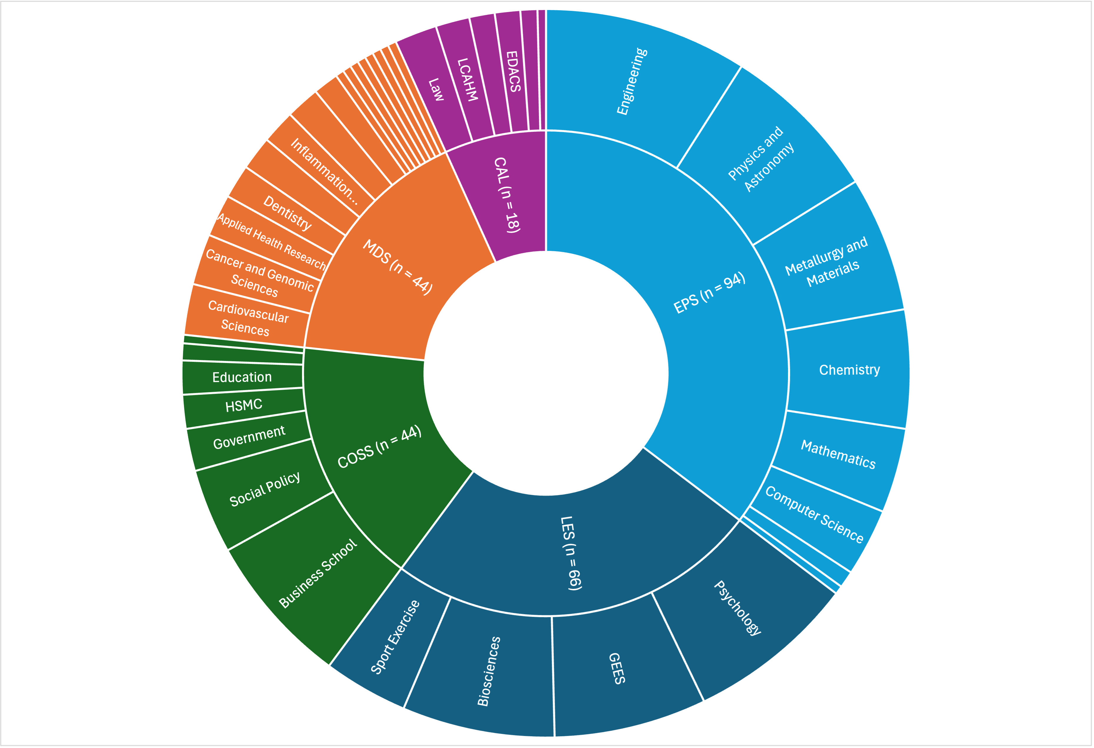 The survey was open between 19 February and 18 March 2024 and was completed by 266 researchers, 75% research staff, and 25% research students. Researchers from all colleges responded to the survey, with Engineering and Physical Sciences (EPS) having the most responses (35%) (see figure below).