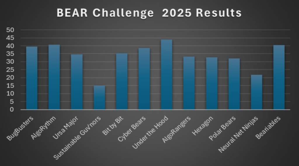 Over the three days of 24-26 June, we welcomed 90 undergraduate and postgraduate taught students to #BEARChallenge2025. In an attempt to meet demand for places, this year we expanded to allow 15 teams but demand also rose at a pace, with 31 teams registering their interest! It is great to see the level of interest in taking part in the Challenge, gaining skills in High Performance Computing (HPC) and team work, as well as hearing about the varied opportunities for careers in HPC.
