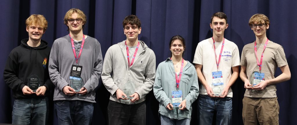The winning team ‘Beariables’ with their prizes. From left to right: Harry Vicaradge, Ewan Hallat, Jamie Cline, Sereya Mee, Adam Wilson and Arthur Baverstock.