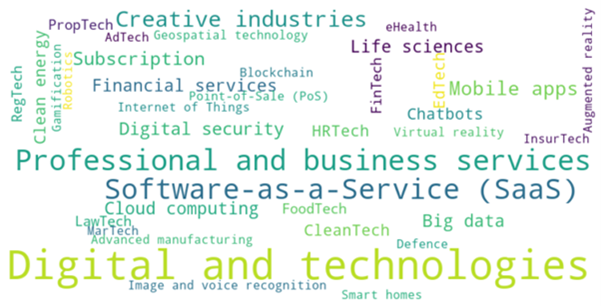 In the wordcloud (Figure 2) of Buzzword relating to AI firms, Professional and Business Services, as well as Software as Service, are among common things AI firms in the Greater Brimingham provides. For example, Capri Healthcare provides software for AI powered triage and referral management. Creative industries also plays an important role here, with over 12 AI firms in the city-region, focusing on AI powered marketing content such as Attentive Mobile.