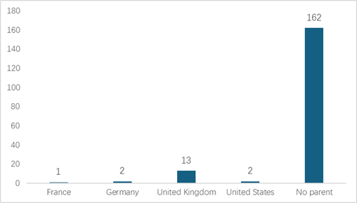 Figure 3: Number of AI companies in the Greater Birmingham by the origin of ultimate parent company