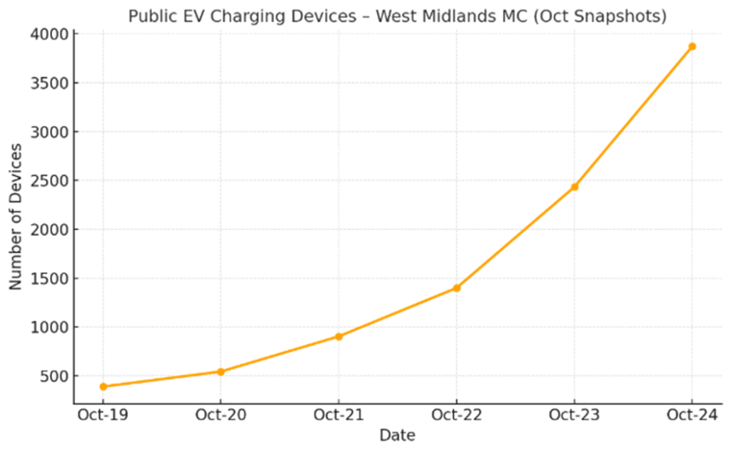 Figure 6 Public EV Chargers in the West Midlands Metropolitan County (Oct 2019- Oct 2024)
