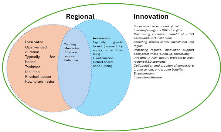 Initially £100 million was made available for three Innovation Accelerators (IAs) pathfinders in the West Midlands, Glasgow, and Greater Manchester. IAs are public-private-academic partnerships aimed at catalysing innovation clusters modelled after Stanford-Silicon Valley and MIT-Greater Boston. The IAs are specialised vehicles that bring together public sector stakeholders, private sector stakeholders, and leading research institutions. The goal was to align public and private investment to fund local research development and innovation RD&I projects that generate wider public benefits in addition to those accrued by programme beneficiaries