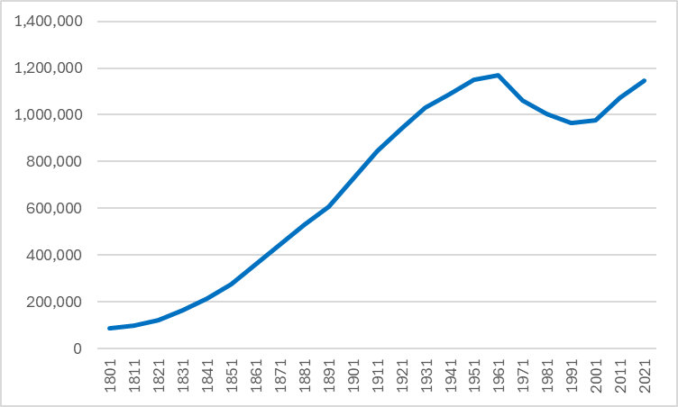 Figure 1. Population of Birmingham, 1801-2021
