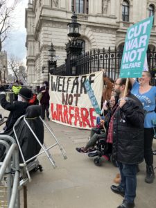 Of course, this was merely the latest attack on the subsistence of disabled people that continues a tradition of cutting disability benefits and portraying those relying on them as ‘scroungers’.[4] In response, protests were organised, rallies were held, and the reforms were paused pending the forthcoming Timms review into disability welfare, which promises a flawed and deeply inadequate model of co-production with disabled people in contravention of the requirements set out in the UN’s Convention of the Rights of Persons with Disabilities (CRPD).[5]