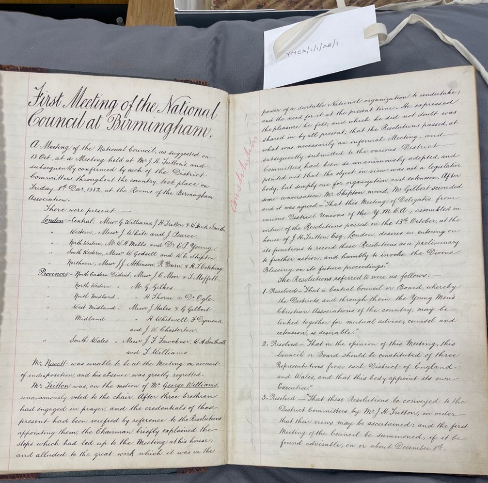 Did you know the first meeting of the National Council of the YMCA was held in Birmingham? Archived minutes for the YMCA, held in the Cadbury Research Library, note that the first official meeting of the newly formed National Council took place in Birmingham on 8 December 1882, and that is when deliberations on the council’s membership took place. It was in this period that the YMCA decided to have a centralised organisation of its operations, to give a better structure to its work across England and Wales and beyond. It is great to point out this Birmingham connection, at a time when the University of Birmingham is celebrating its 125th anniversary, through historic archives.